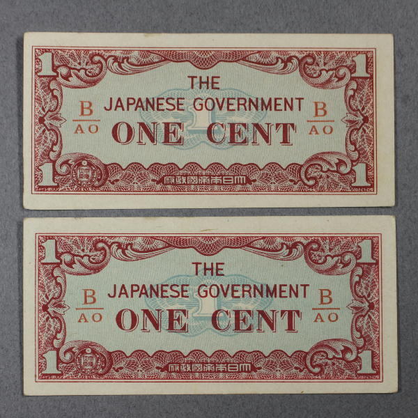 - 大東亜戦争軍票《 へ号 1セント 2枚 》ビルマ方面 未使用 t0205
