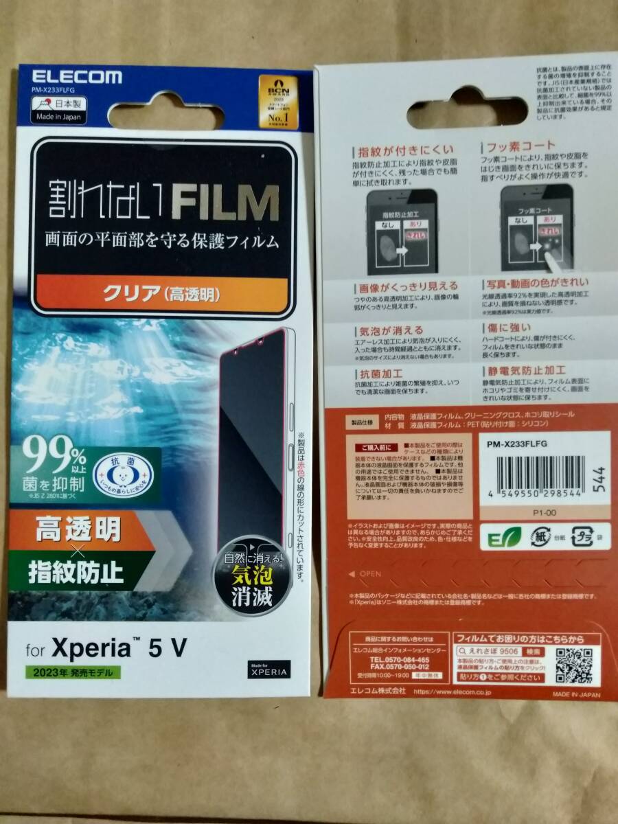 - 安心の日本製 Xperia 5 V SO-53D SOG12 ELECOM 端末の画面を傷や汚れから守る、指紋防止タイプの高透明フィルム