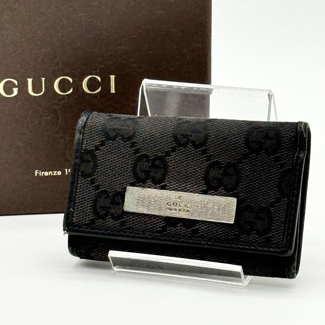 - 【良品】GUCCI グッチ GG柄 6連キーケース 金具 ロゴ金具 シルバー キャンバス レザー メンズ レディース ブラック BJ810421U