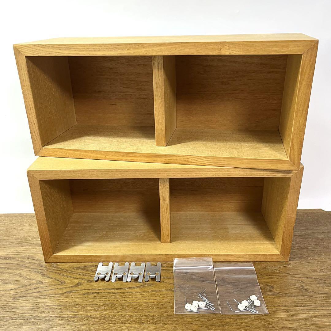 - そ90【2個セット】無印良品 壁に付けられる家具 箱 オーク材 フック付き 壁掛け収納 ウォールディスプレイ 飾り棚