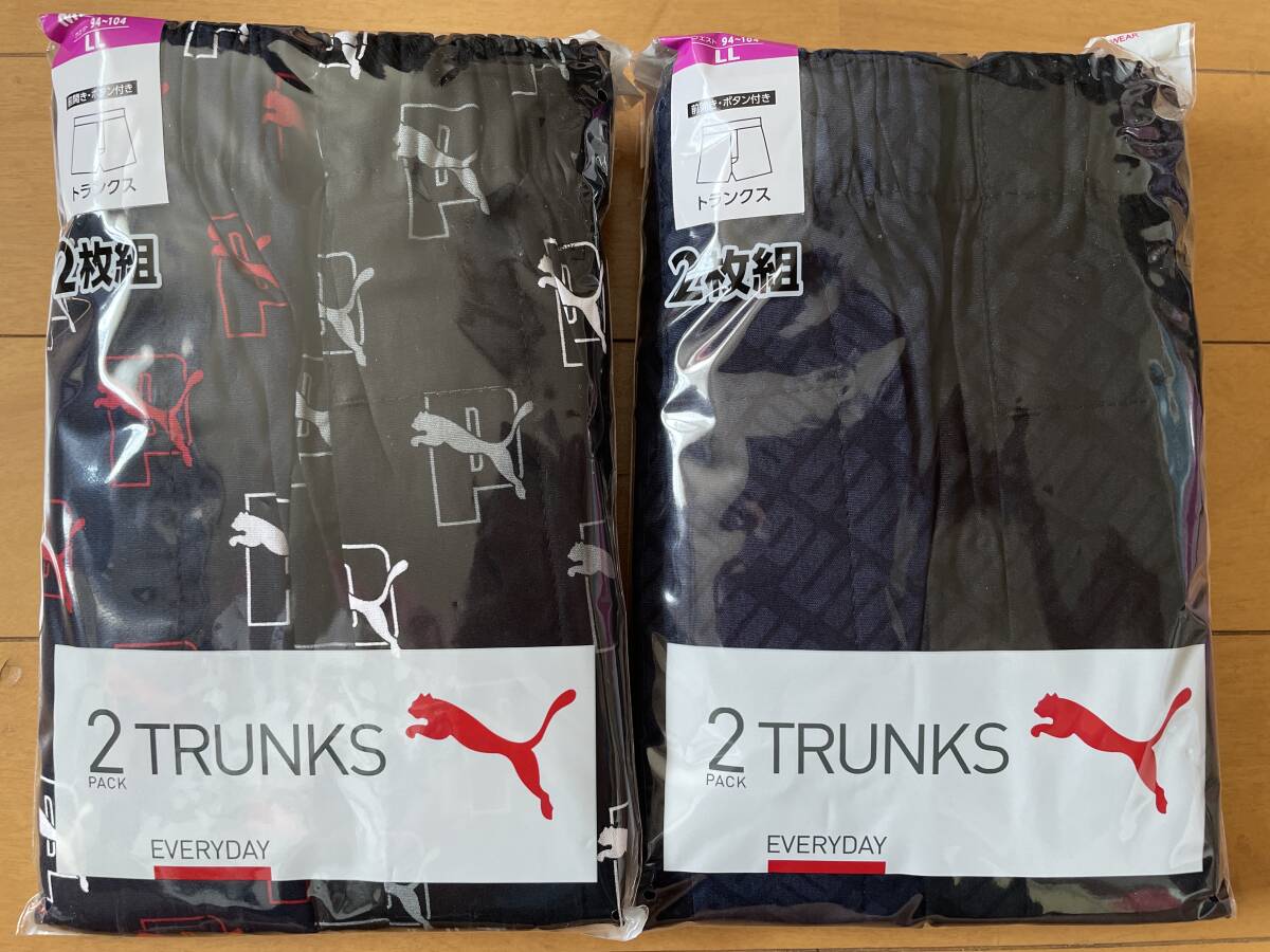 > 新品未使用 送料込み PUMA プーマ LL 4枚(2枚組×2)トランクス(前開き・ボタン付き)総柄 プーマキャット ネイビー 紺 ブラック 黒 即決