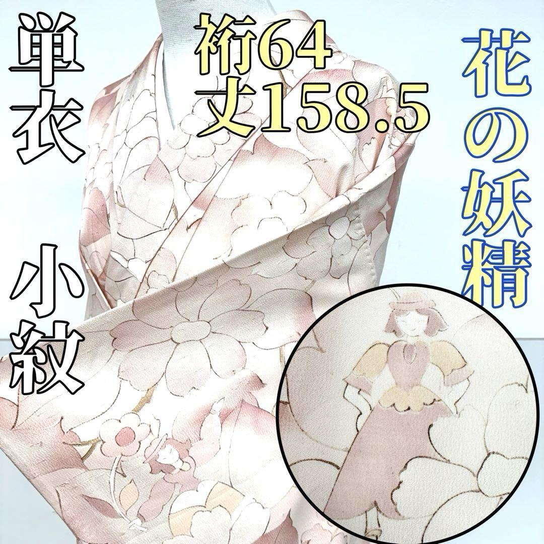 > 【着物と帯 時流】ヒ25966◆正絹 単衣 小紋◆女の子 鳥 ピンク 珍しい柄