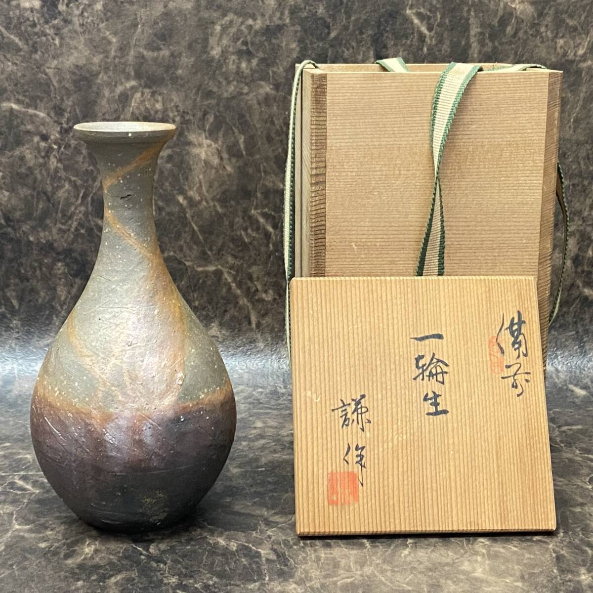 > 備前 一輪生 謙作 共箱 藤原謙 備前焼 花生 花器 茶道具/裏千家/表千家/今日庵/家元/千利休