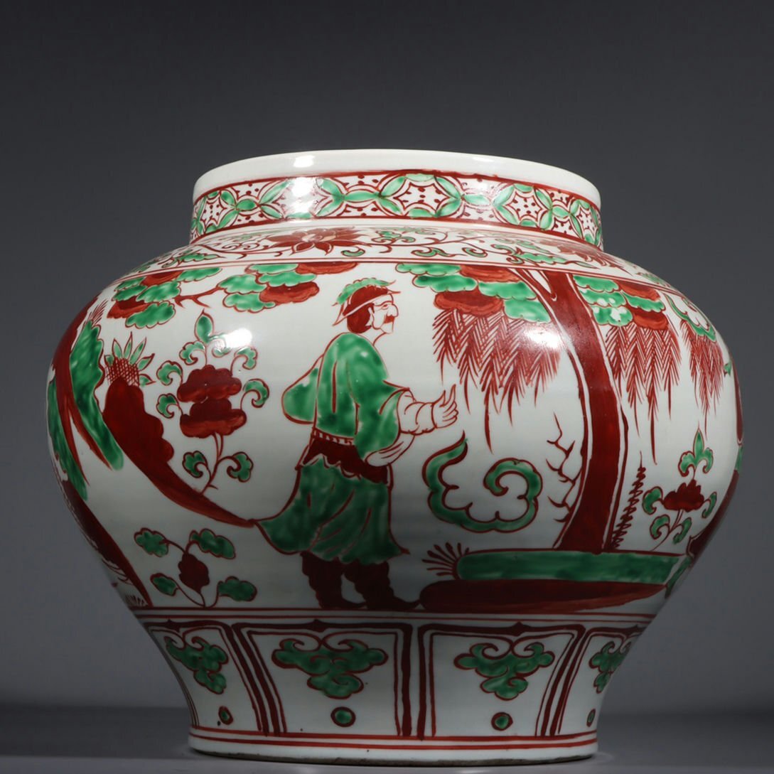 - ▼渡鶴羽▼A645元紅緑彩人物罐・古陶磁器 ・珍品旧蔵・古賞物・時代物