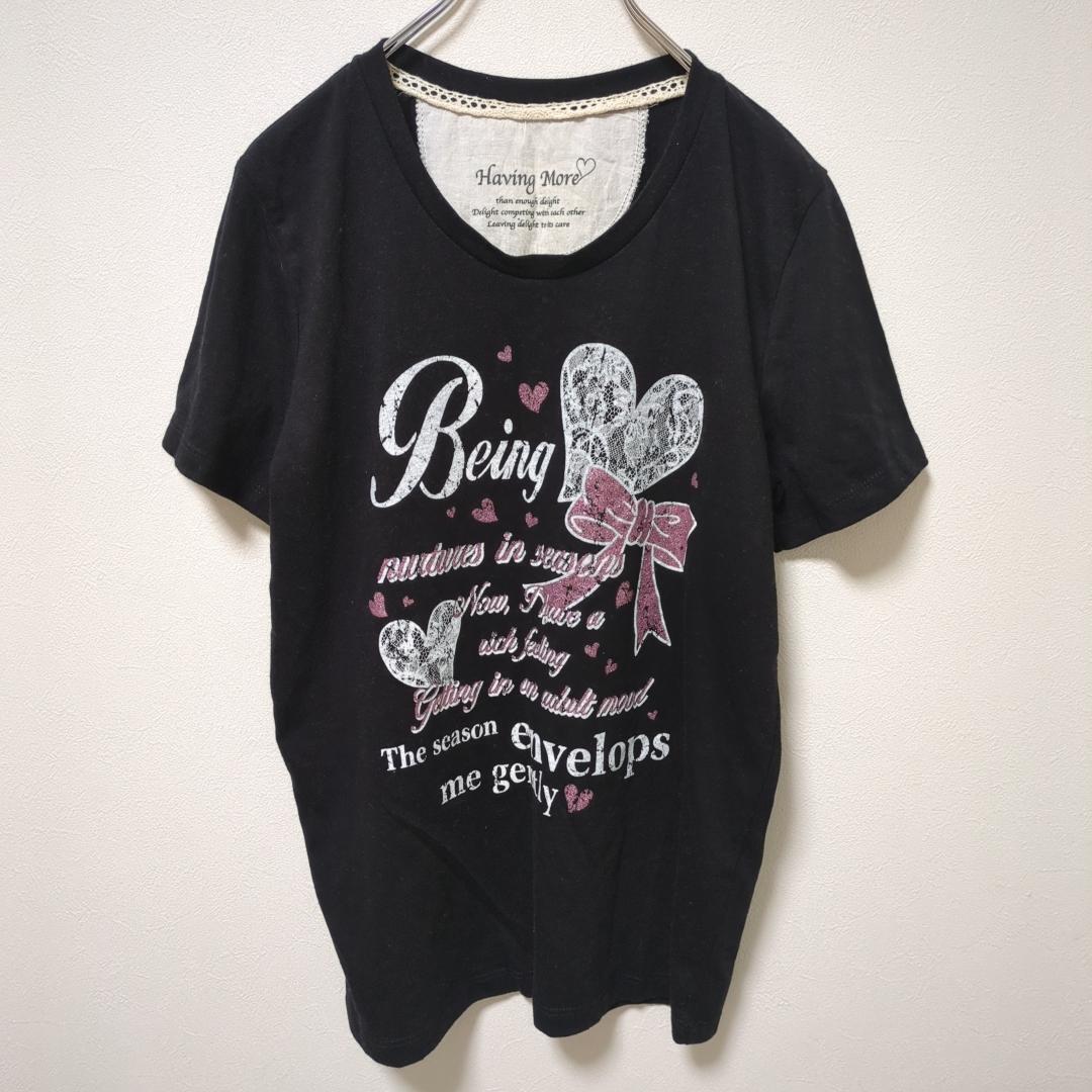 - eco latch(M)半袖Tシャツ*フロントビックプリント*リボン*ハート*黒