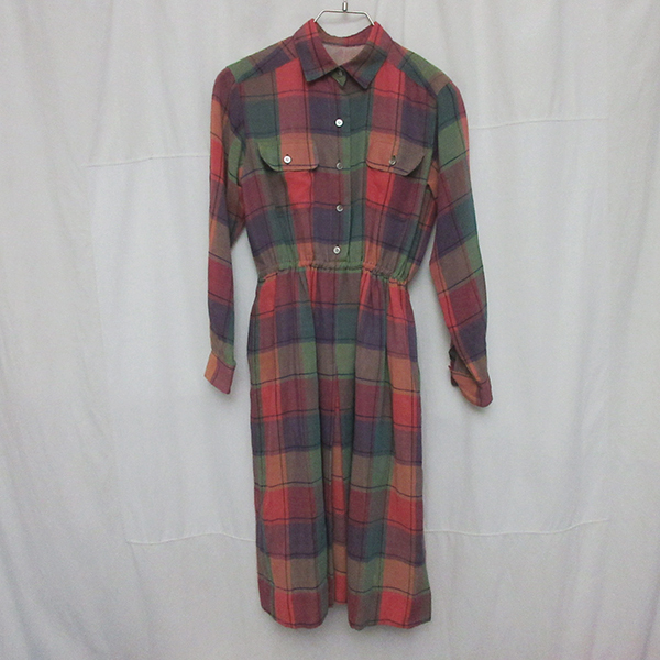 - ■ フランス マルチカラー チェック ワンピース ポケット付き ヴィンテージ レトロ