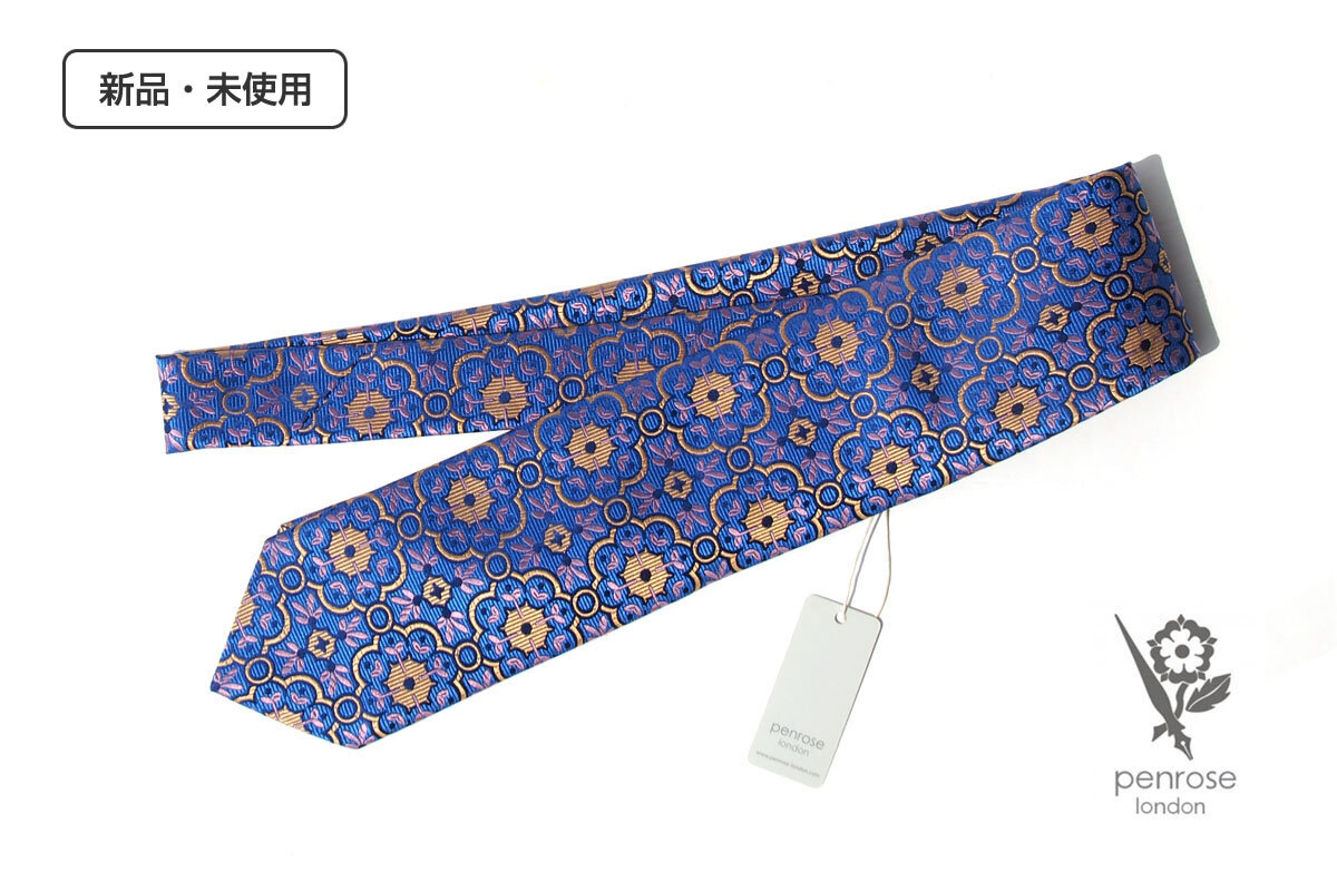 - 送料無料★新品|未使用|ペンローズ ロンドン|penrose london|フラワー柄ネクタイ|05|Blue Base