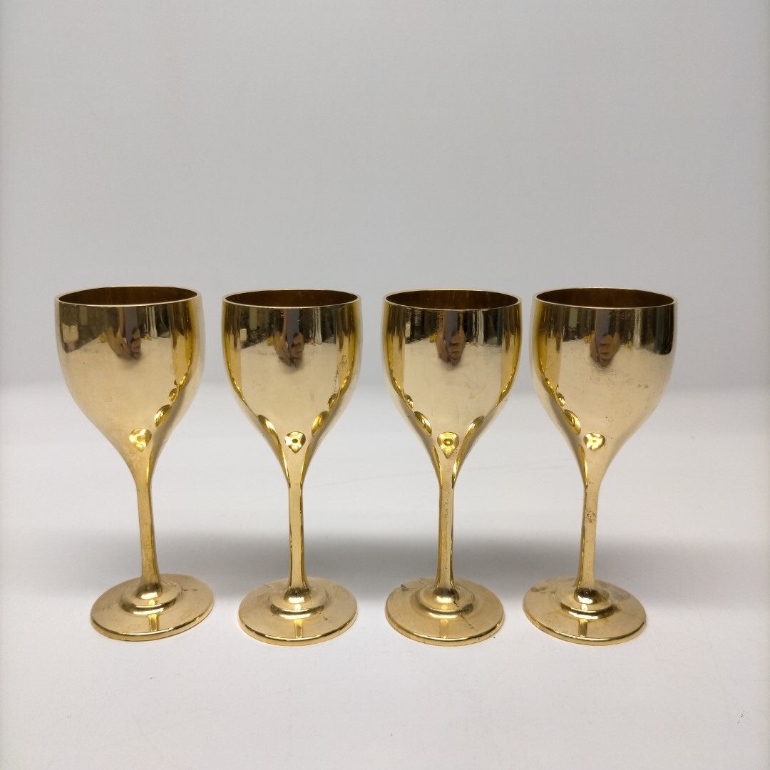 - アンティーク 金メッキ ワイングラス 4個セット ユーズド 金杯 食前酒 昭和 レトロ コップ