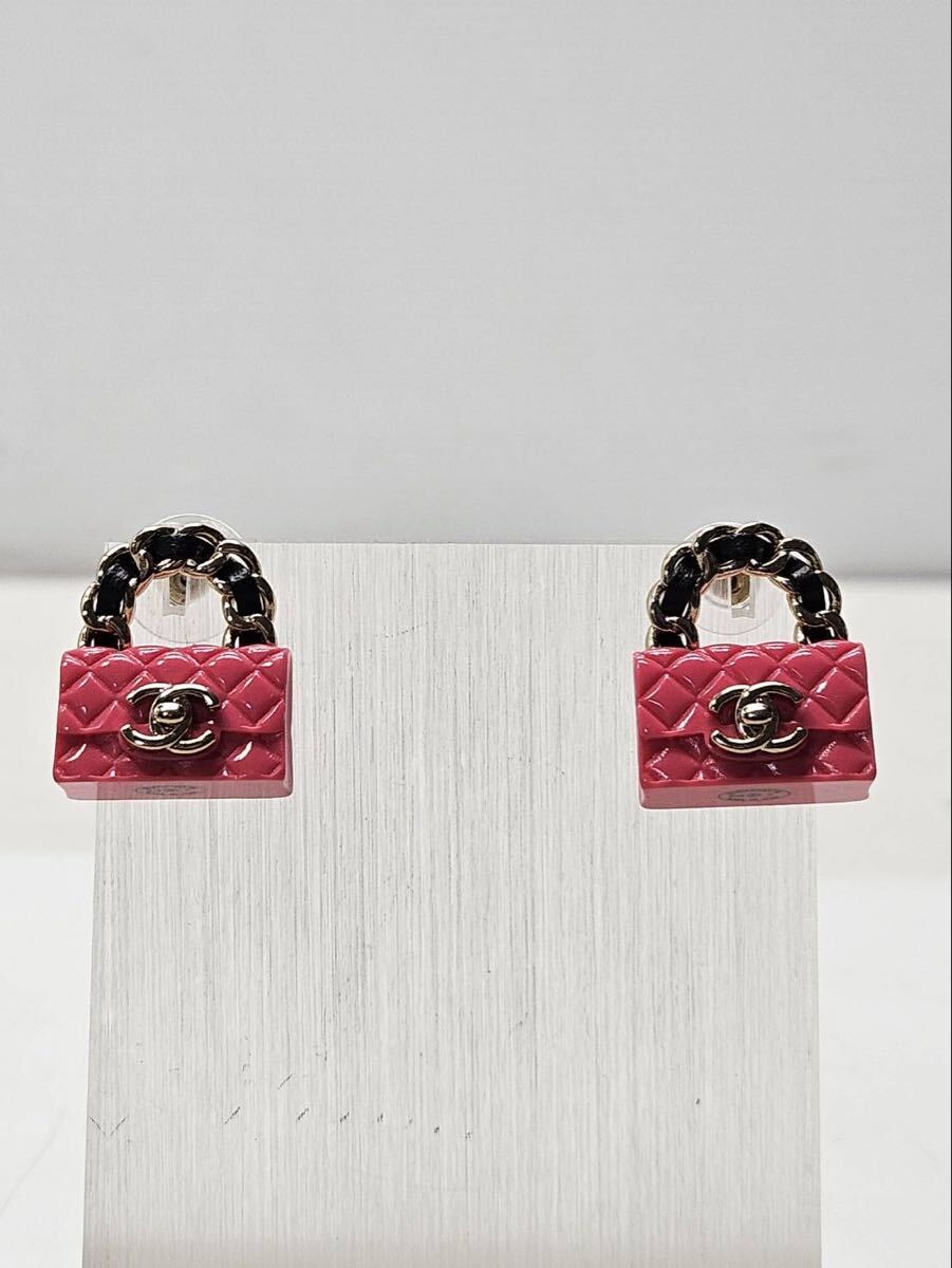 > CHANEL シャネル B23C ココマーク ターンロック レザーチェーン マトラッセ ピアス 15348