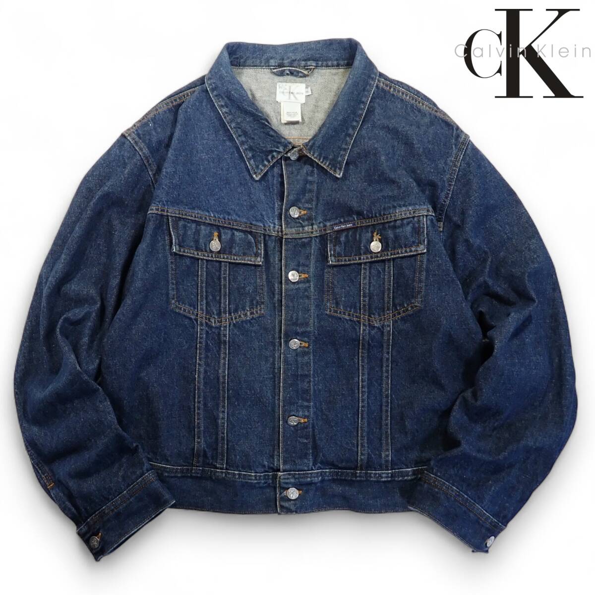 > 7084/CK Calvin Klein Jeans USA製ビンテージ 濃紺 デニム トラッカージャケット XXL●G ジージャンカルバンクラインジーンズ●洗濯済古着