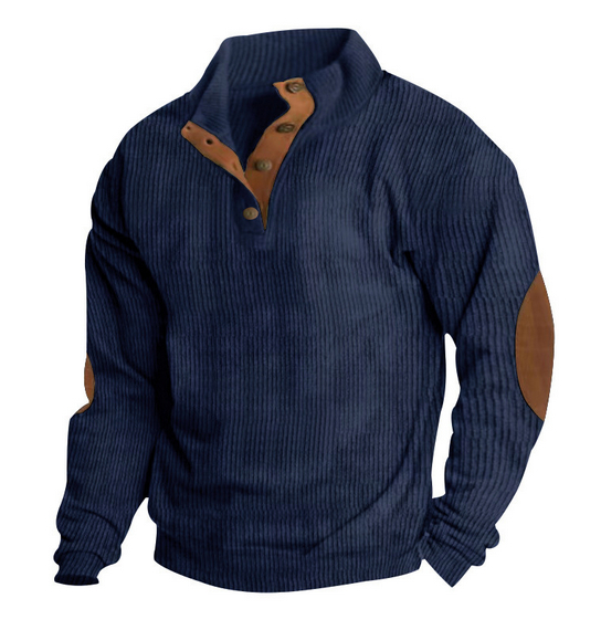 > 人気品トレーナー メンズ 長袖 ハーフボタン エルボーパッチ トップス ゴルフウェア無地トレーナー 長袖トレーナー 春秋 黒色 多色 S~5XL