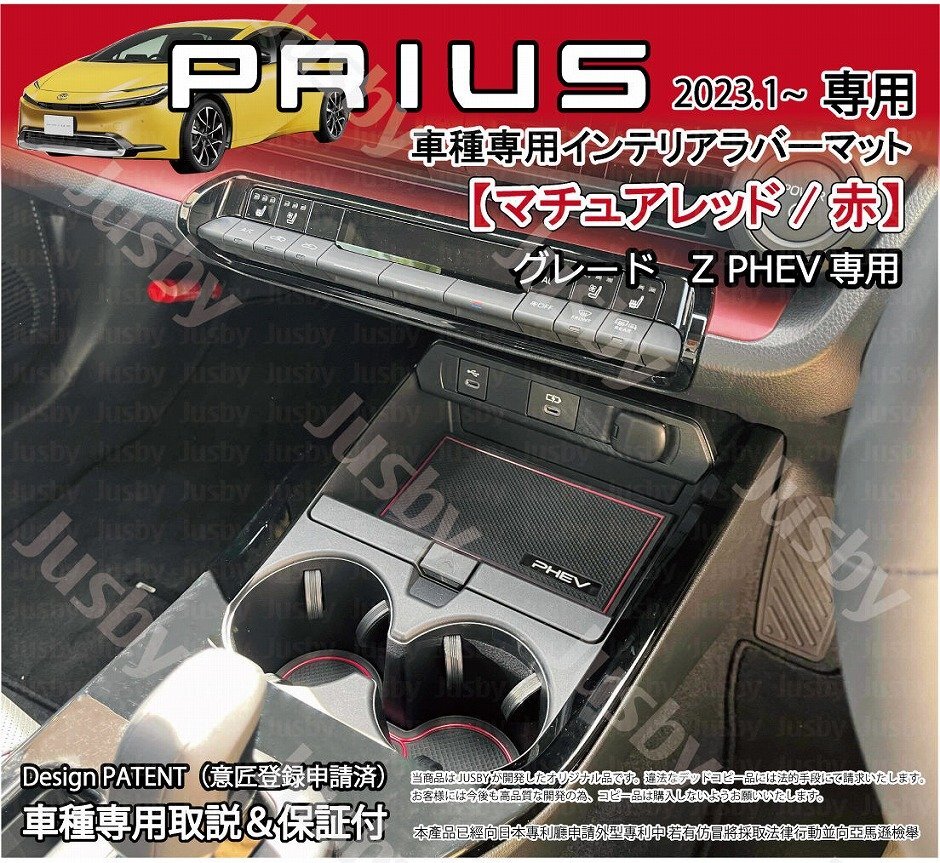 - トヨタ 新型プリウス 60型 インテリアラバーマット(Zグレード PHEV/赤 マチュアレッド)PRIUS PHEV ゴムマットパーツ 内装保護ドレスアップ