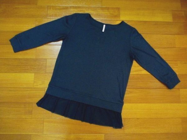 - ★新品!★ エルプラネット チュール付 七分袖カットソー 40 紺