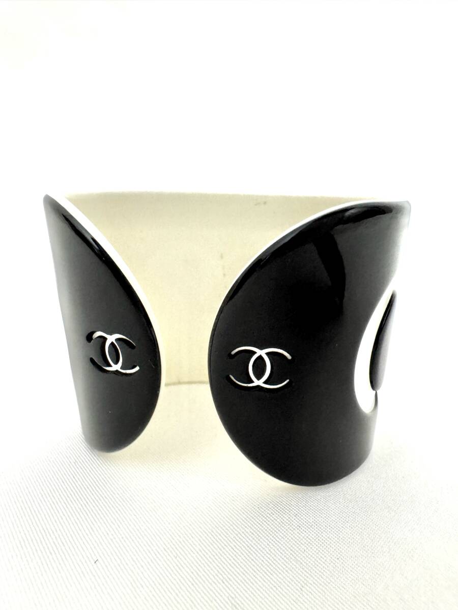 - 7I2806【本物保証】シャネル バングル ブレスレット COCO ココマーク バイカラー ブラック ホワイト 02P CHANEL
