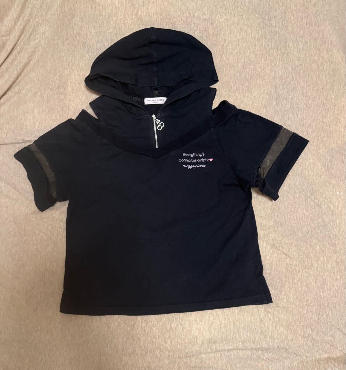 > メゾピアノ 肩あき厚め 綿100% 150 さくらんぼ オフショルダー 半袖 Tシャツ パーカー ジュニア ブラック チュール ラブトキシック