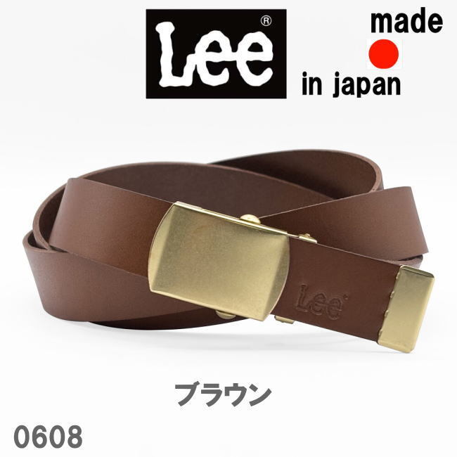 - ブラウン Lee リー 25mm 本革 レザー 0608 GI ガチャ ナロー ベルト 日本製
