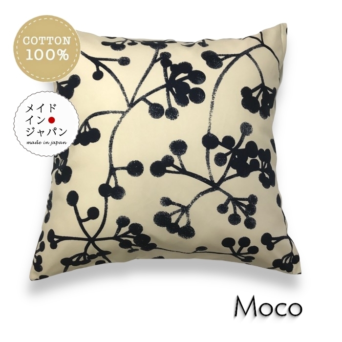 - アウトレット 大判クッションカバー モコ 北欧 ボタニカル柄 紺 60×60cm 綿100%