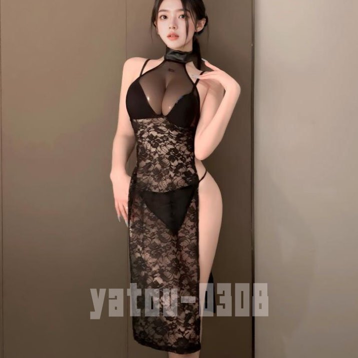 > K203B コスプレウェア 透け透け レース 両サイド スリット チャイナドレス レースクイーン セクシーランジェリー ナイトウェア