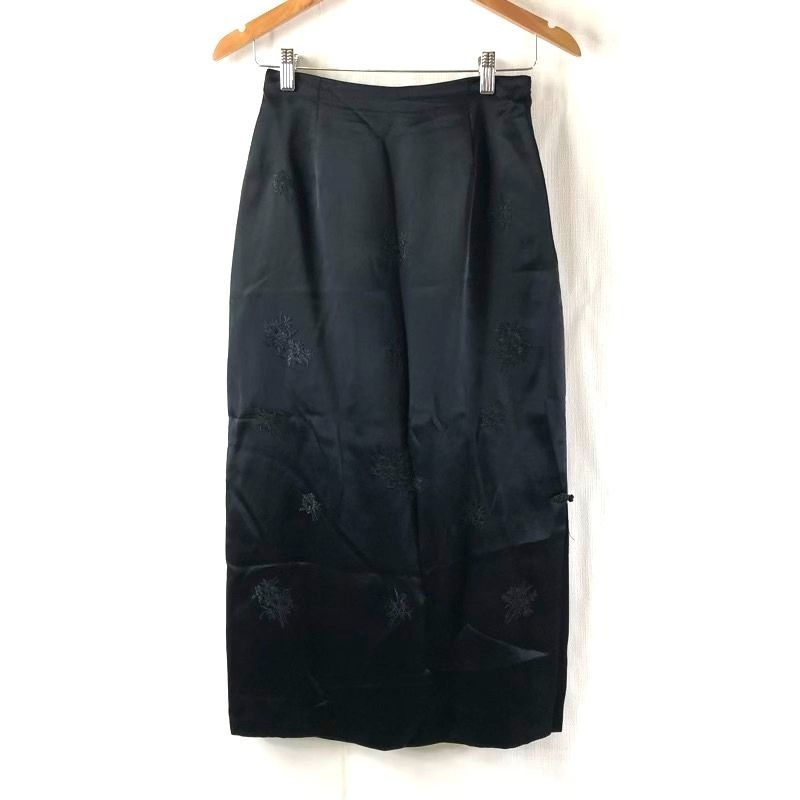 > イタリヤ 伊太利屋 スカート ロング サテン生地 花刺繍 チャイナ風 裏地あり ブラック 9サイズ 2025083100261
