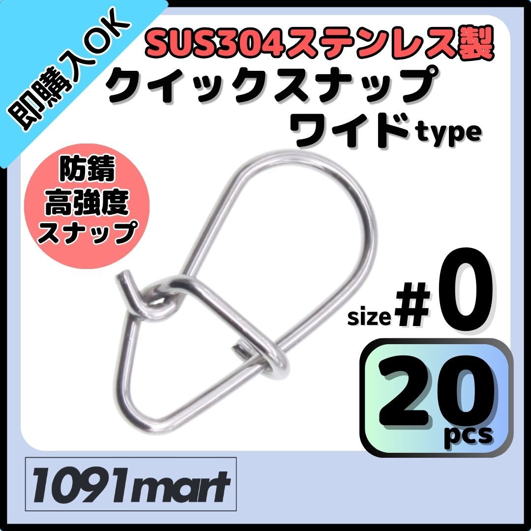 > SUS304 ステンレス製 強力クイックスナップ ワイドタイプ #0 20個セット ルアー用 防錆 スナップ【ミニレター】