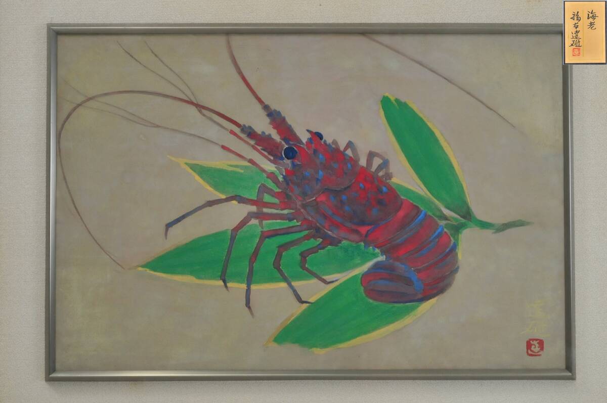 - 【真作】 福本達雄 日本画 『海老』 共シール 額装:59×45㎝ 画寸:40×27㎝ 箱無 03107041-3