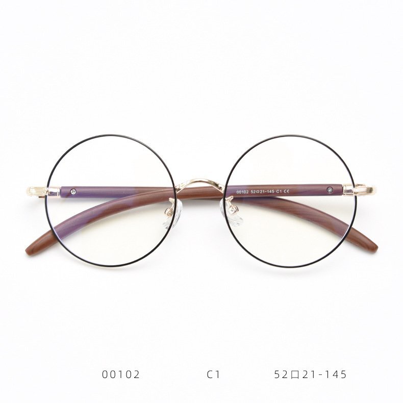 > 【送料無料】眼鏡フレーム フルリム 金属 チタンメガネ 超軽量! 丸 度数なし ヴィンテージ 男女兼用 金黒 ydyj245
