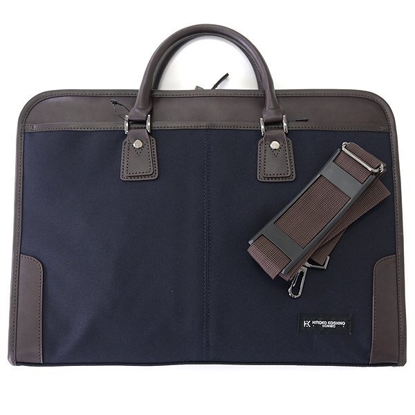 - 新品 ヒロココシノオム 12インチ B4対応 2ルーム Fレザー切替 2WAY ブリーフ バッグ 紺 【K20427】 自立型 ビジネス ショルダー ネイビー
