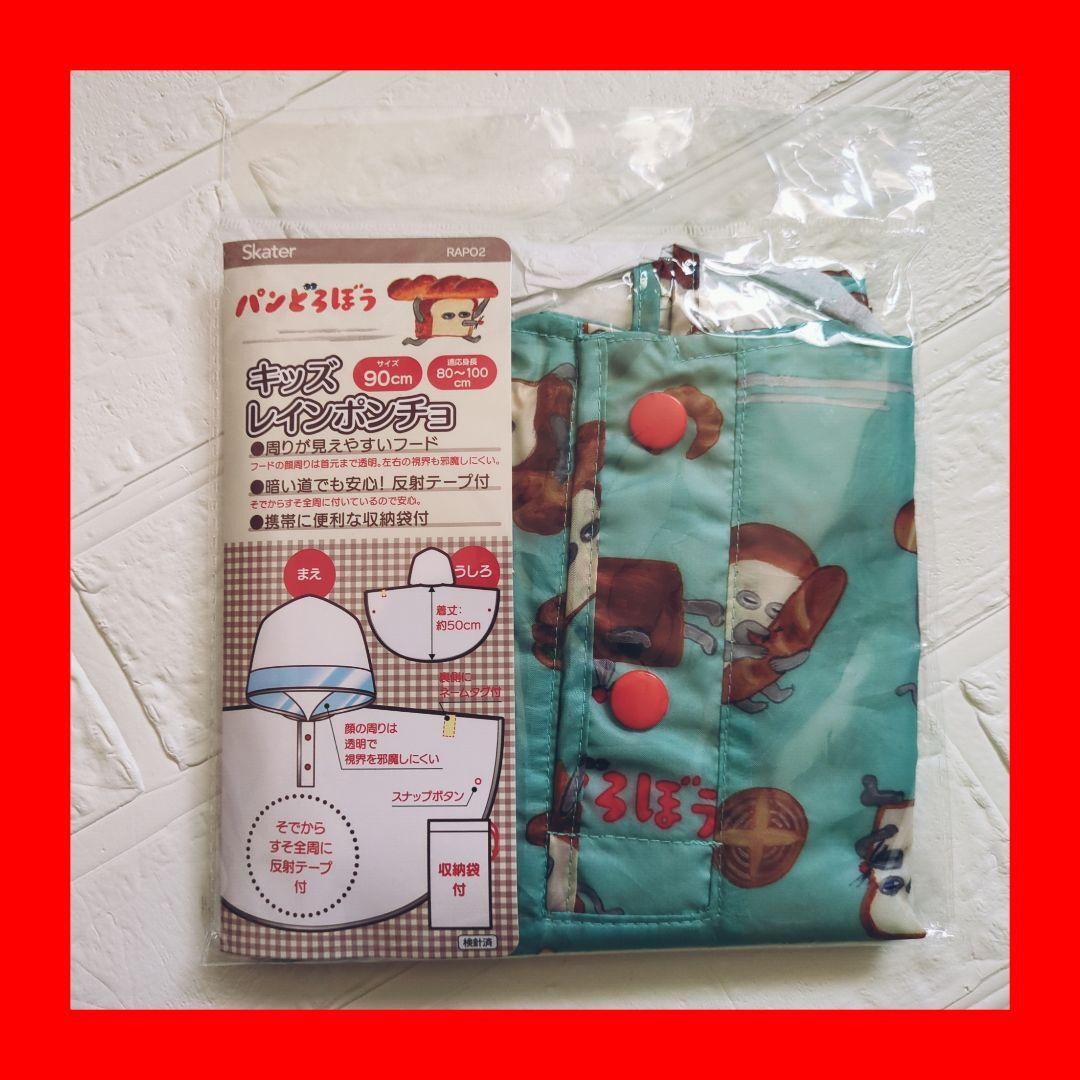 - 90サイズ パンどろぼう キッズレインポンチョ 反射テープ付き 収納袋付き