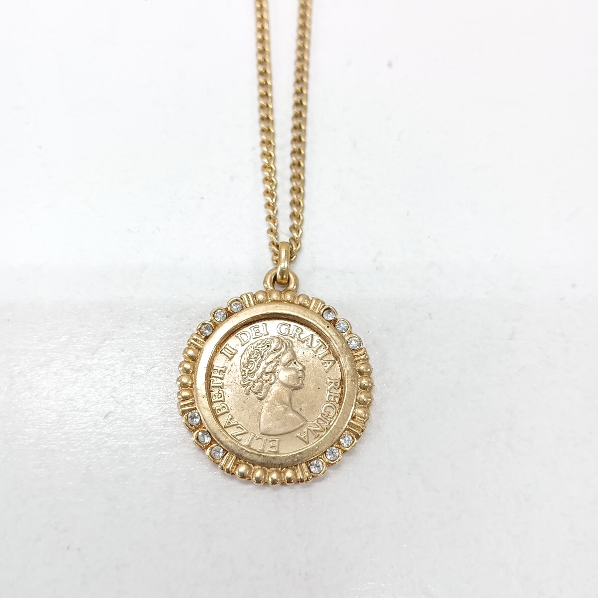 - 476 ネックレス コインチャーム 1CENT ELIZABETH Ⅱ DEI GRATIA REGINA 1963 ゴールドカラー アクセサリー ファッション小物