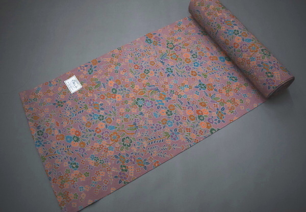 - A44-26【凛々】即決 新古品 ポリエステル 小紋 着尺反物 紫 花 未仕立て品