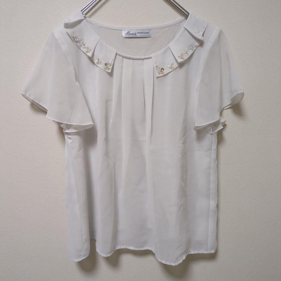 - Meru's(M)ビジュー付ブラウス*フレンチスリーブ*トップス*透け感*白