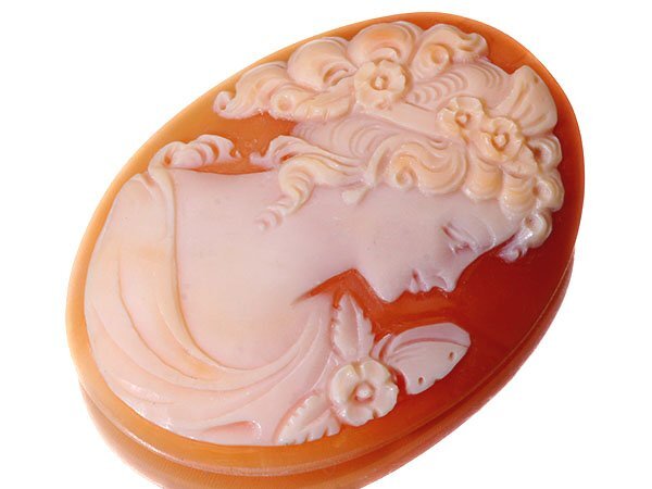 - 【ジュエリー極】アンティーク お洒落な女性の彫刻 高級シェルカメオルース 45.2mm×33.8mm w5707-m【送料無料】