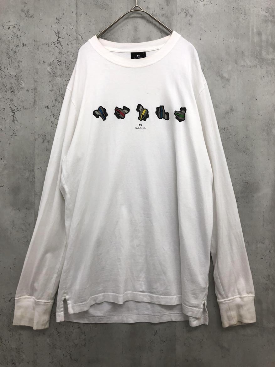 - ゆうパケットOK PS Paul Smith ポールスミス リピーティング ゼブラ プリント ロングTシャツ カットソー sizeXL/白 ◇■ ☆ fic9 メンズ