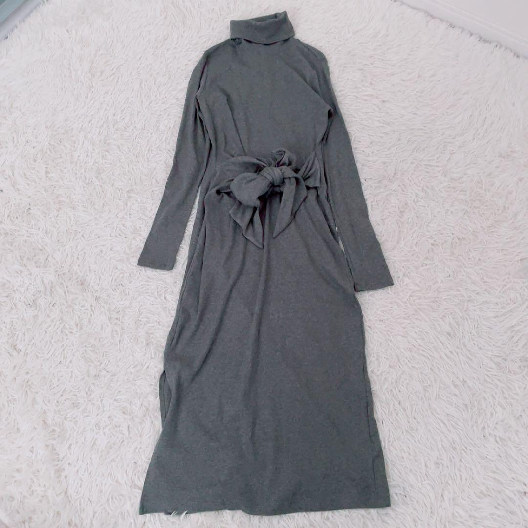 - 美品 ローレンラルフローレン ロングニットワンピース リボン 2way ハイネック LaurenRalphLauren m グレー