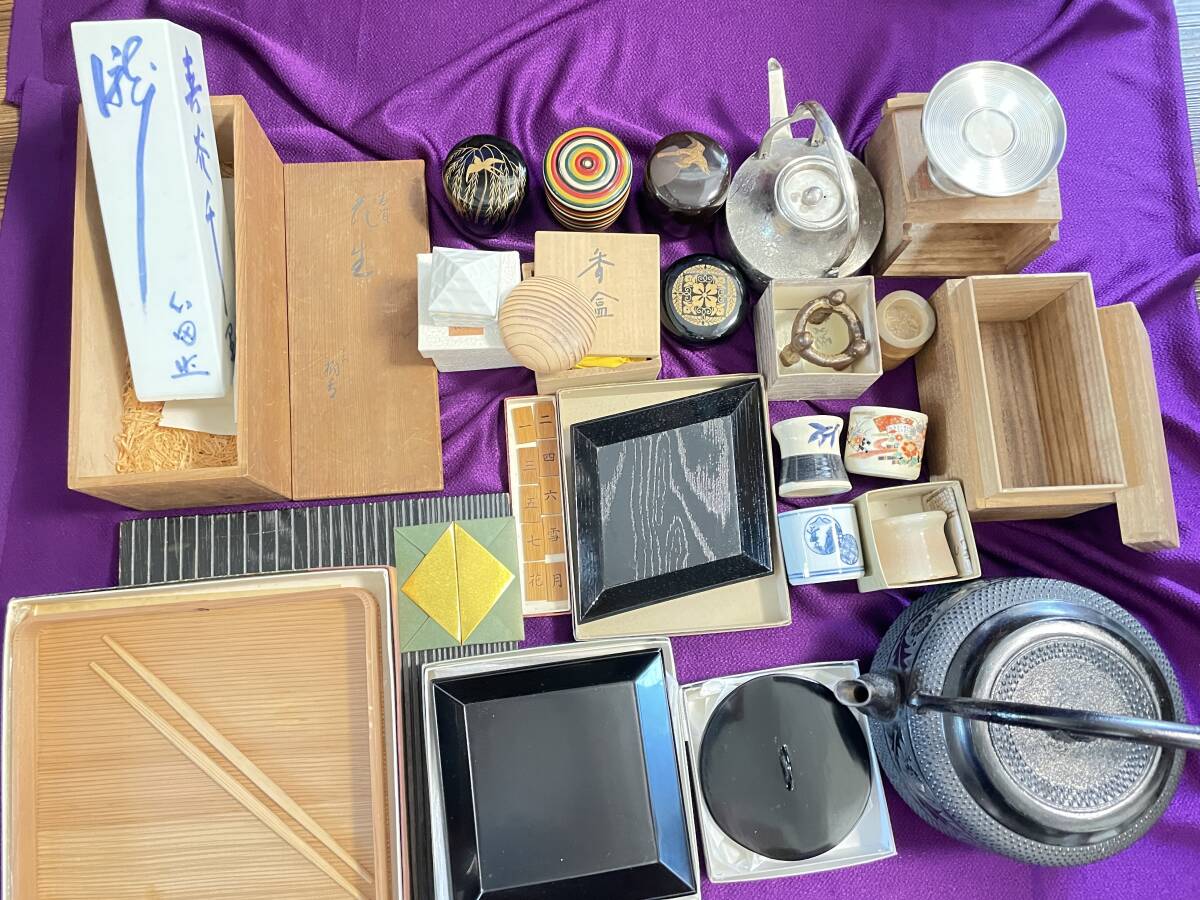- 茶道具 まとめて 24品(鉄瓶、稲葉心田花入、棗、蓋置、花札、塗蓋他)