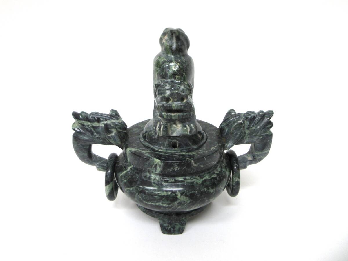 > 【9-191】香炉 お香立て 石材 大理石柄 シーサー 置物 獅子 和風 香道具 石彫 緑