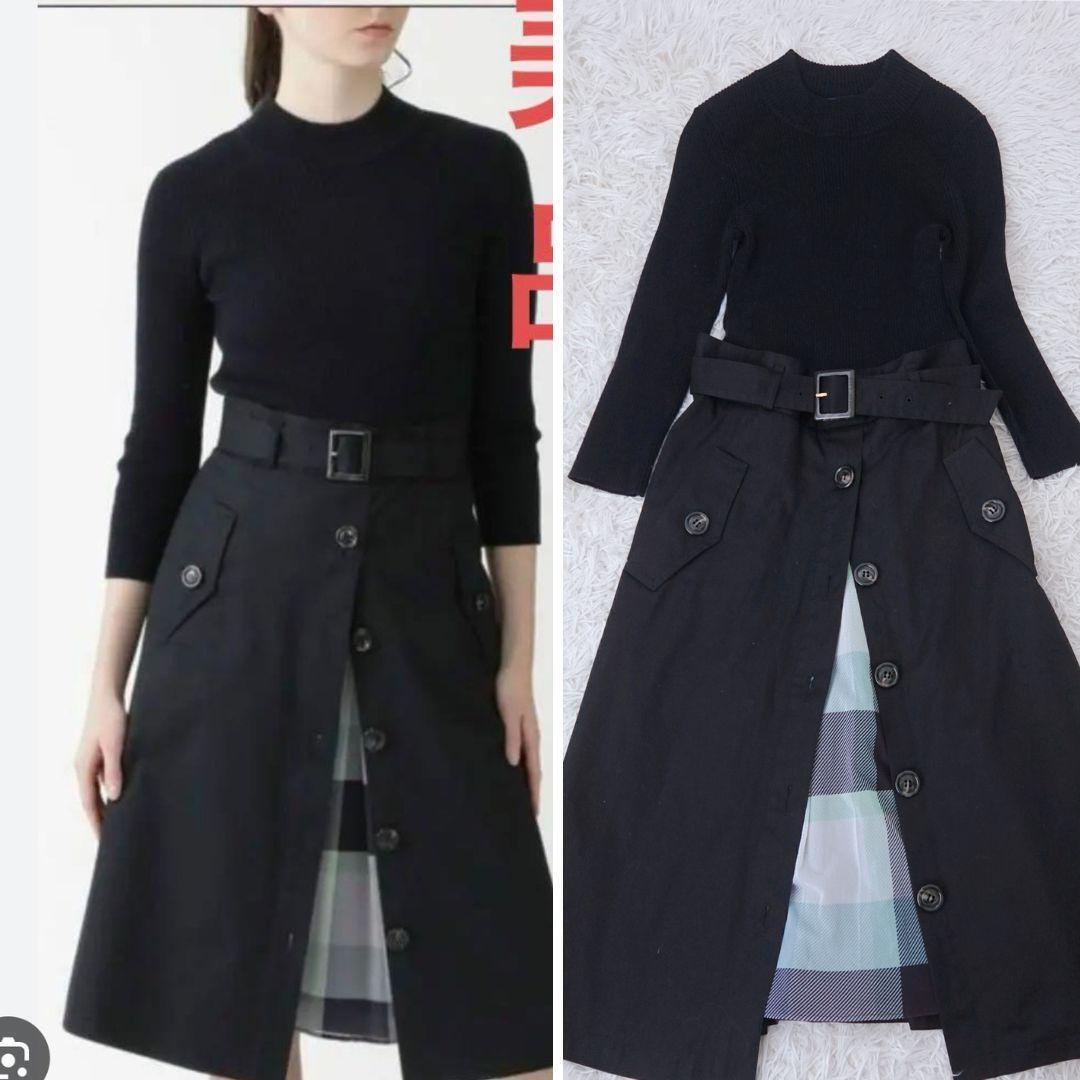 > ブルーレーベルクレストブリッジ ドッキング ワンピース クレストブリッジチェック リブニット BLUE LABEL CRESTBRIDGE