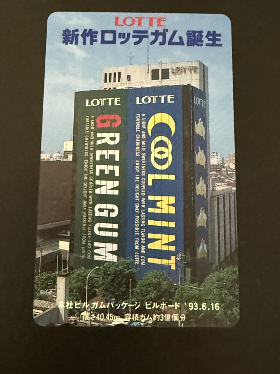 - ロッテ LOTTE 新作ロッテガム誕生 グリーンガム クールミント 1993 ガムパッケージビルボード テレカ 50度 未使用品 非売品