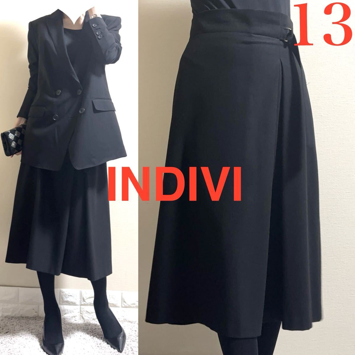 - 大きいサイズ!INDIVI インディヴィ 洗える ウエストゴールド金具 ラップスカート風 ロングスカート ブラック 13 XL 日本製 秋冬春