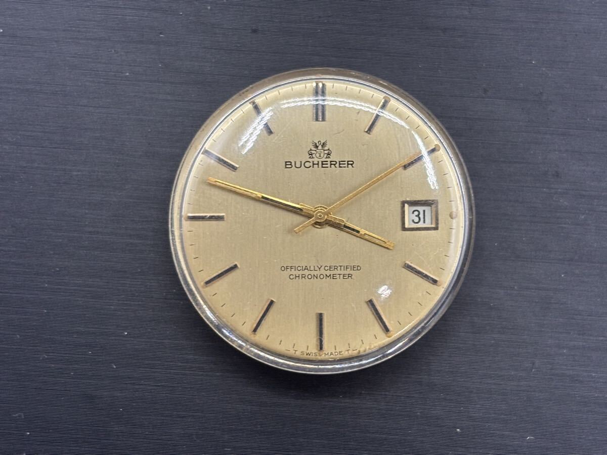 - H2509294013 ★1円〜!BUCHERER ブヘラ ゴールド文字盤 自動巻き デイト クロノメーター 稼働 フェイスのみ 現状品 中古