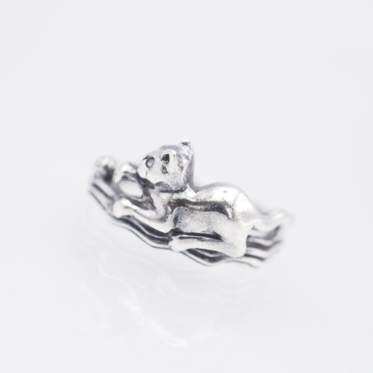 - F710 ヴィンテージ 925刻印 リング 猫 キャット アニマル デザイン シルバー 指輪 9号
