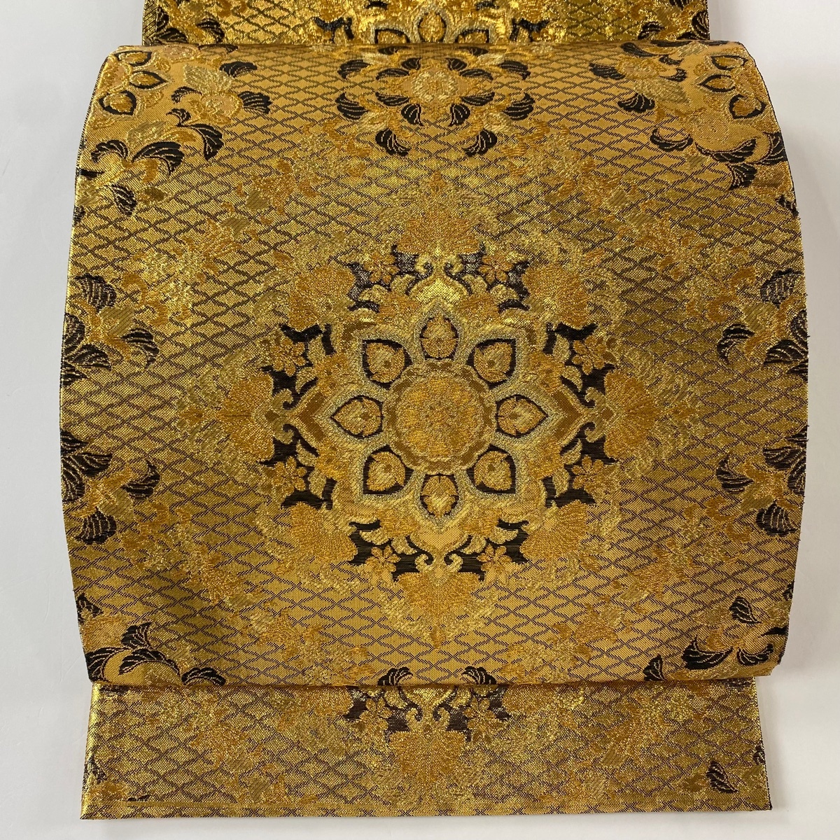 - 【美品】 袋帯 秀品 華文 草花 金糸 箔 金色 六通 正絹 【中古】