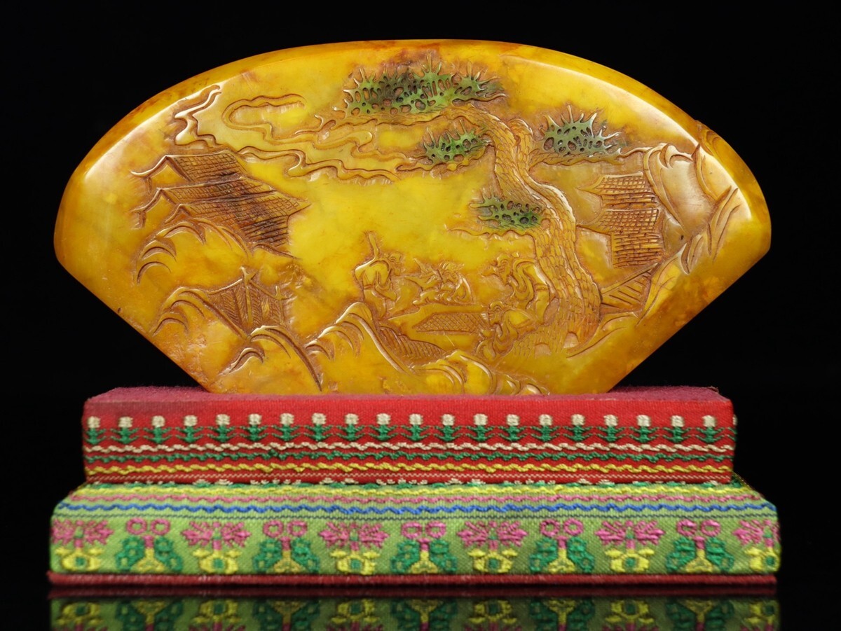 - 「清 尚均作 老寿山石 田黄石彫り 香山美景擺件」極細工 擺件 古賞物 中国古美術 旧蔵出
