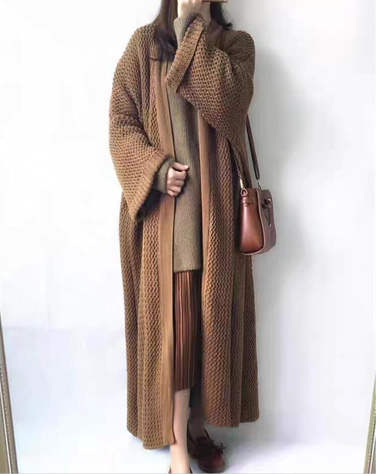 - 秋新品 *ニットカーディガン レディース ロングカーディガン コート アウター 体型カバー 通勤 ロング 羽織り事務 大人 *ブラウン
