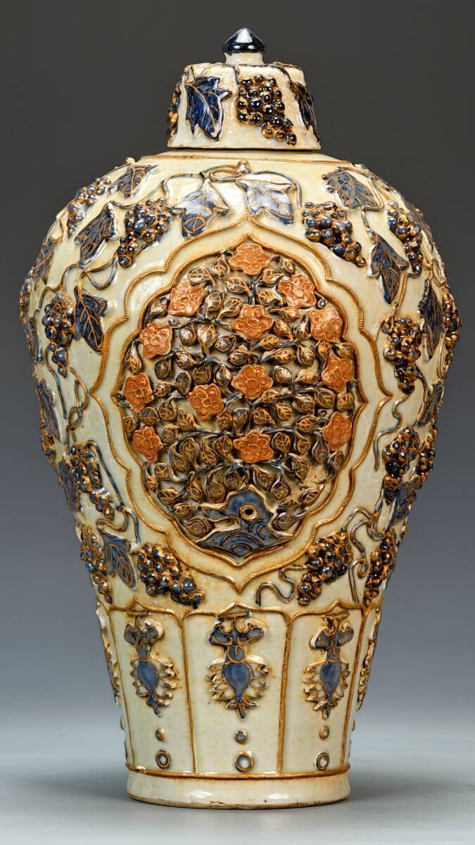 - TM9#9688【3.1】中国骨董 人間国宝 磁器【元青花釉裏「多子多福」紋両面開窓付き梅瓶付き】工芸品 施釉陶 青花磁 陶芸 精美彫 置物 收藏品