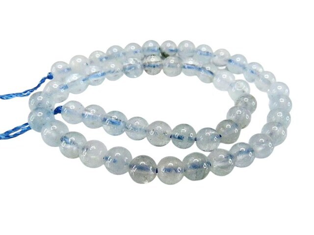 - 透明度有りアクアマリン天然石小玉約4mm円玉ビーズ約20cm連売り一連プライム