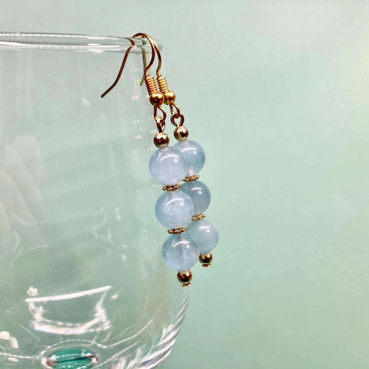 - アクアマリンピアス フックピアス 8mm (ゴールド) イヤリング、樹脂フック変更可 樹脂ピアス シンプル ハンドメイド
