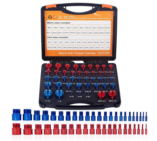 - 新入荷44個のナット&ボルトチェッカー、赤&青の糸チェッカーボックス、素早くチェック、インチ&メトリックの使いやすい糸チェッカー