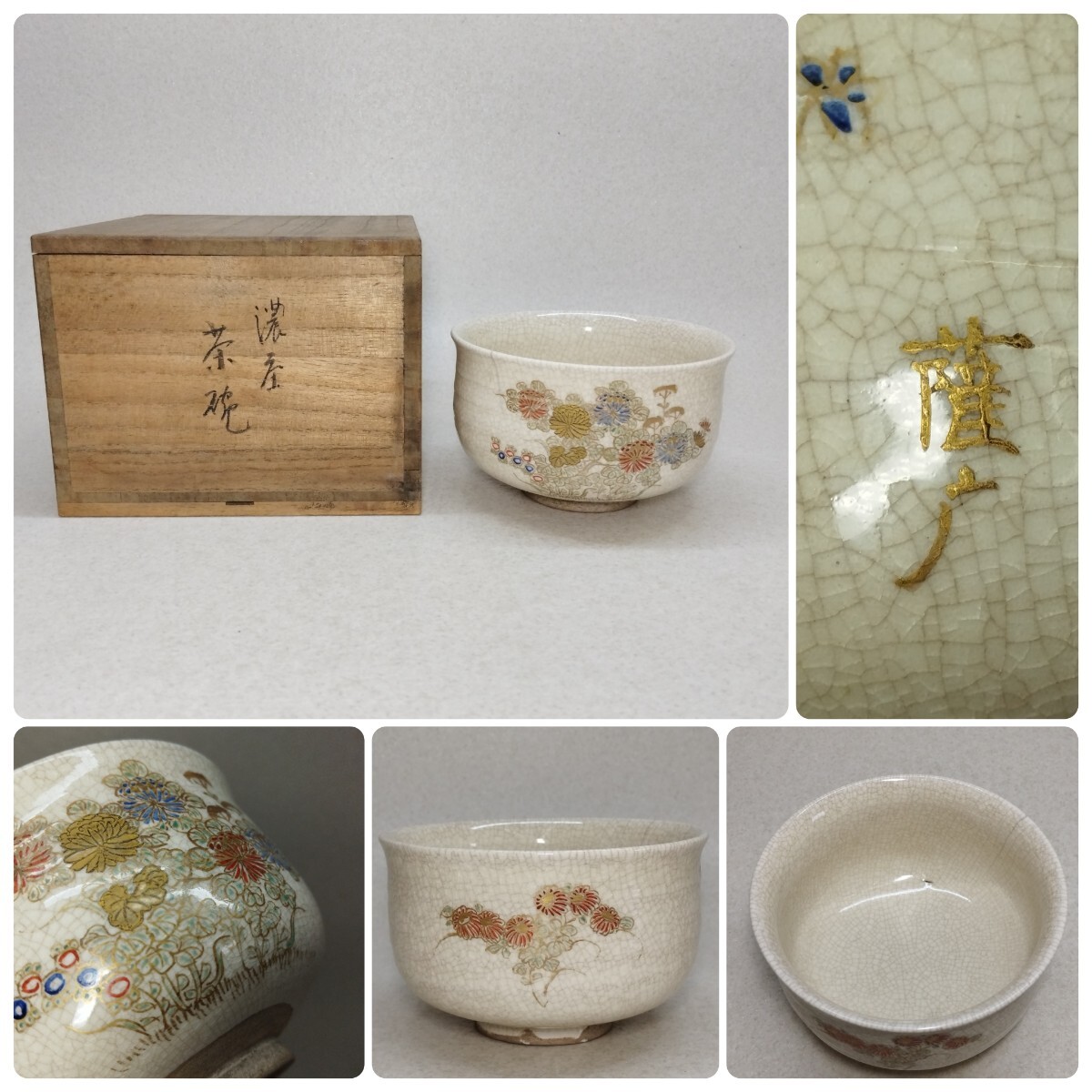 - 古薩摩 菊花文 濃茶茶碗 薩摩焼 抹茶碗 茶道具 茶碗 古民家整理品b