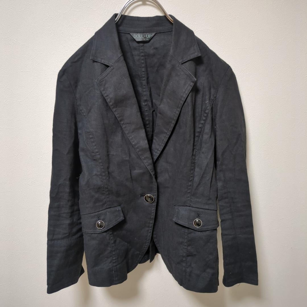 - DOLL-UP(9AR)リネンテーラードジャケット*綿麻*薄手*オフィス*黒